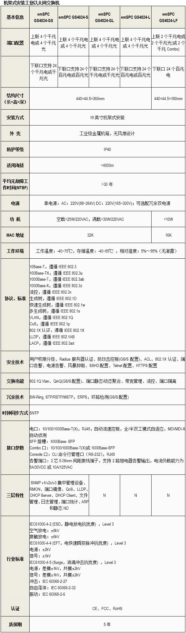 emSPC GS2024-LF机架式工业以太网交换机