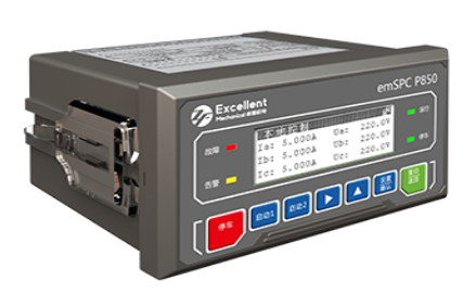 emSPC P850低压电动机保护测控装置适用于380V(690V)以下的低压系统,用于低压电动机馈线保护、监测和控制,同时还具有设备维护和运行记录、跳闸记录等辅助功能,测控一体化化设计,便于接线和维护。