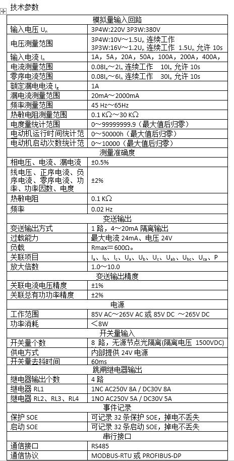 5)装置默认为MODBUS通信,如果需要PROFIBUS-DP通信,则在选型时需要注明; MODBUS通信和PROFIBUS-DP通信只能二选其一。