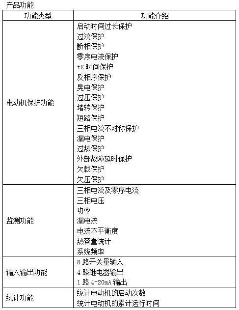 1)12 种基本保护:电动机启动时间过长保护、堵转保护、短路保护、过流保 护、断相保护、tE-时 间保护、过热保护、反相序保护、接地保护、漏电保护、外部 故障延时保护、电流不平衡保护;